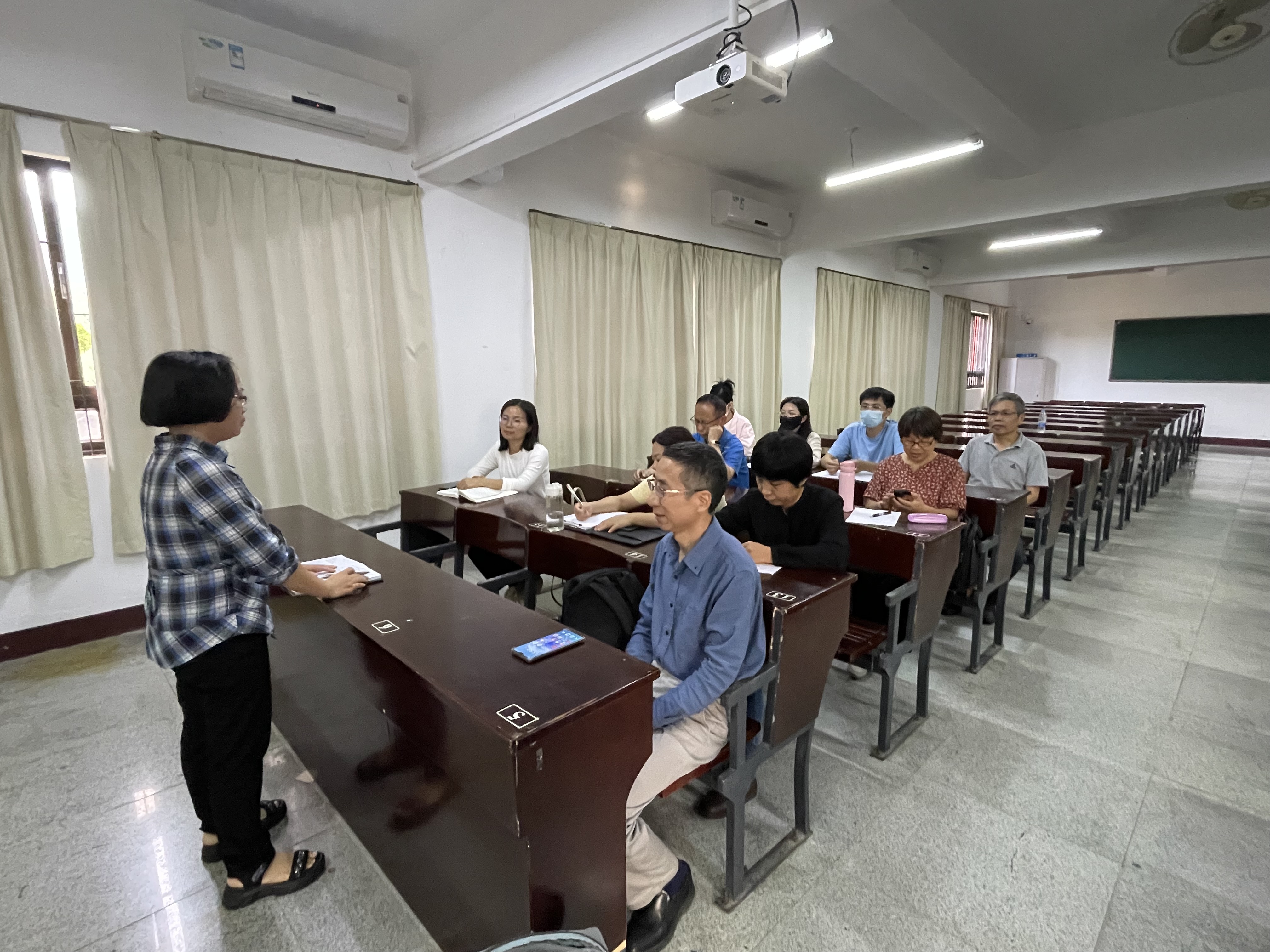 会上,经济学系主任颜秀金首先对上半学期经济学系的教师教学情况和员工学风情况作了总结,并对本学期接下来的工作重点作了大致的部署。要求任课老师严格要求自己,明确自身的职责所在,优化课堂教学内容,同时增进教师间教学经验的交流,促进教学水平和能力的提升。希望通过期中教学总结,广大教师通过对自身的教学能力进行梳理和反思,查找差距,明确今后的努力方向和进一步提高授课水平和质量的措施。